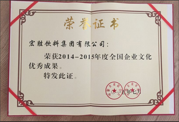 7月25日,由中央企業聯合會評選的“2015中國企業優秀文化成果獎”在京揭曉。其中,宏勝飲料集團榜上有名,成為全國67家獲此殊榮的企業之一。