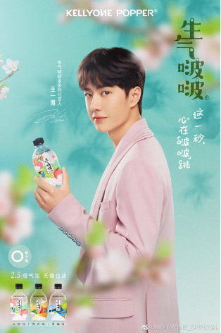 5月16日,宏勝飲料集團自有品牌、專注新生代人群的KellyOne宣布,王一博出任旗下無糖蘇打氣泡水“生氣啵啵”全系列代言人。