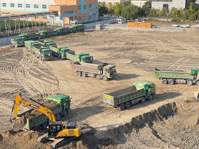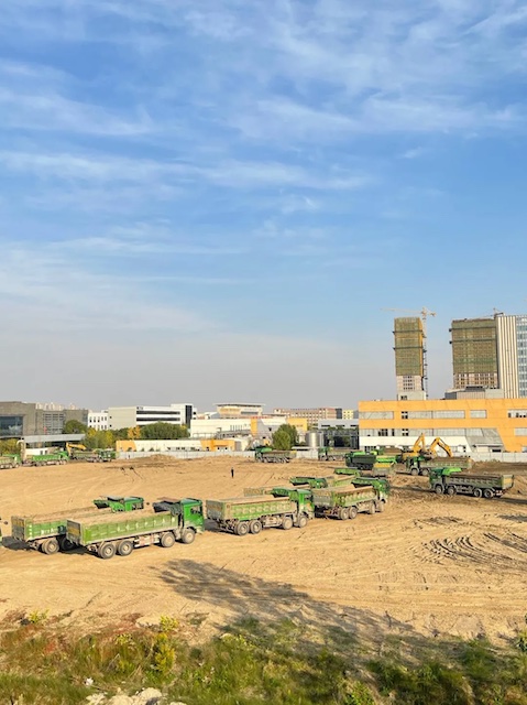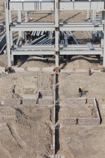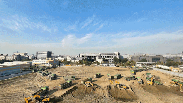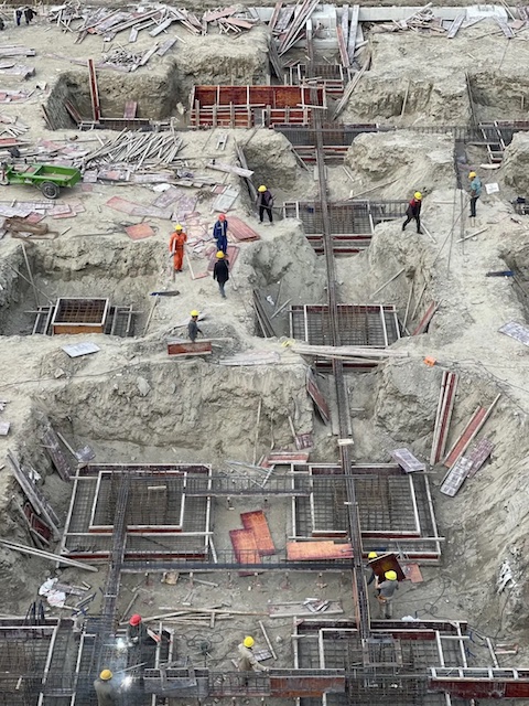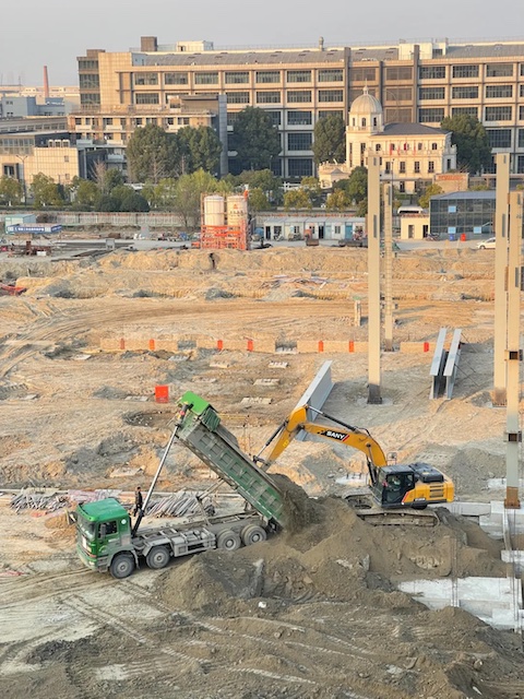 從平整地面到立起鱗次櫛比的主結構鋼柱,從一個個方形的宛如寶石礦的坑到成片接連起的樓板,代表制造業新形態的載體有了輪廓。