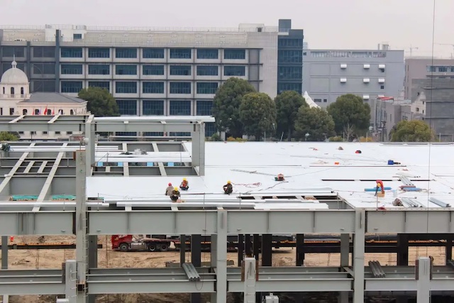 隨著大寒節氣后的雨滴,已經開工2個月的“宏勝超鏈智造”杭州基地經歷地基、主柱后,主車間迎來了鋪設樓承板ing,樓頂工程會在鋪設完樓承板后上澆混凝土,工程進度預計2月底完成,倉庫等其他空間也在持續地建設中。